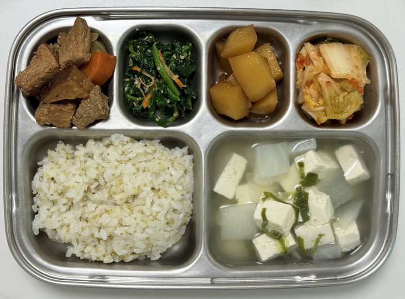 10월2일 목요일 페이지 정보 작성자 최고관리자 댓글 0건 조회 17회 작성일 25-10-02 15:33 목록 본문 차조밥두부탕국돈육갈비찜시금치나물감자조림배추김치*우유촬영제외*축산물이력확인QR 이전글10월13일 월요일 25.10.13 다음글10월1일 수요일 25.10.01